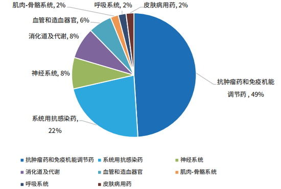 图2 2016-2021年上市的1类创新药治疗领域占比