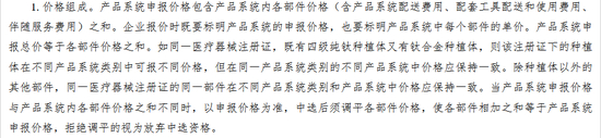 值得注意的是,所有申报的产品系统均应参加报价,且同一竞价单元内同一医疗器械注册人产品系统的同一部件,不区分材质和规格型号,仅允许有一个申报价。