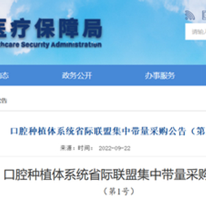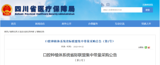 9月22日晚间,四川省医保局发布《口腔种植体系统省际联盟集中带量采购公告(第1号)》(以下简称《公告》)。