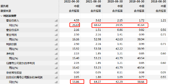 半年报显示, 今年上半年公司营业收入4.59亿元,同比增长26.64%;归母净利润为2.15亿元,同比增长16.42%;归母扣非净利润2.05亿元,同比增长13.86%。