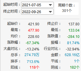 若按照最高价477元,到最低价133元,期间最大下跌振幅超80%。