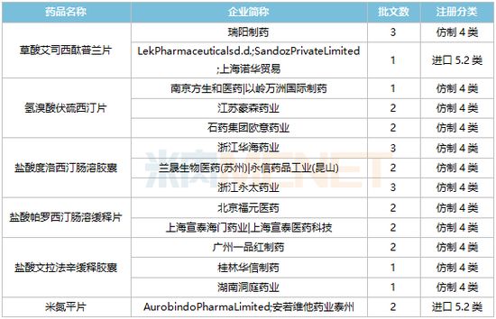 今年以来抗抑郁化药获批上市情况