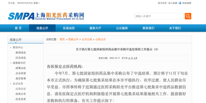 根据《工作指示》上海市预计于于11月下旬正式执行正式执行第七批中选结果,要求各医疗机构简化和加快采购流程,畅通用药渠道。