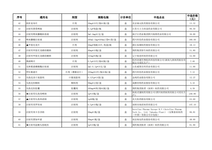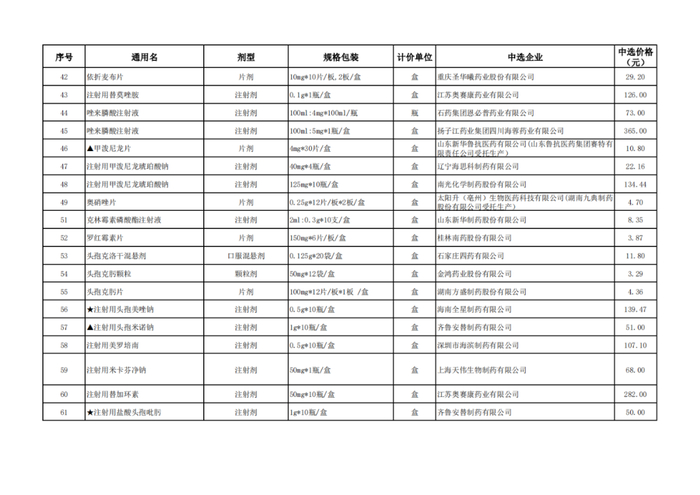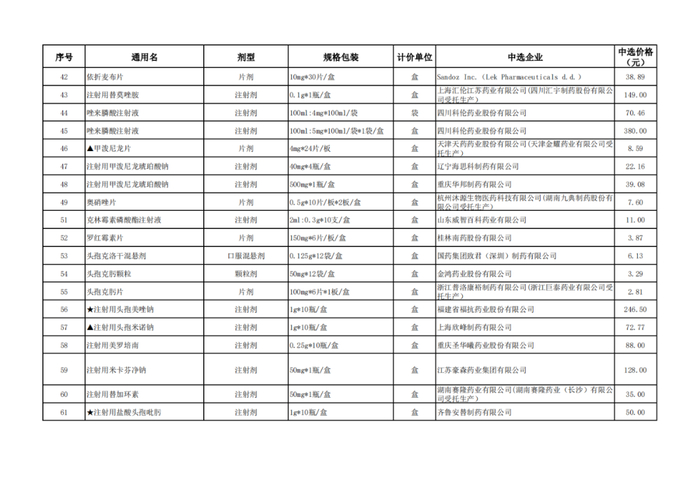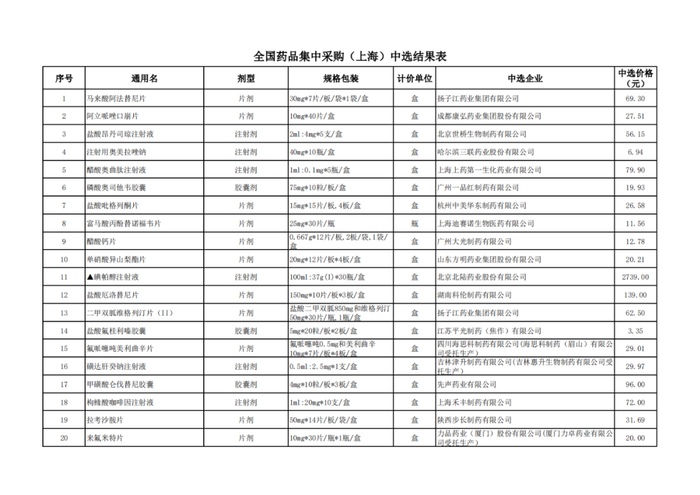 获取全国药品集中采购中选结果表