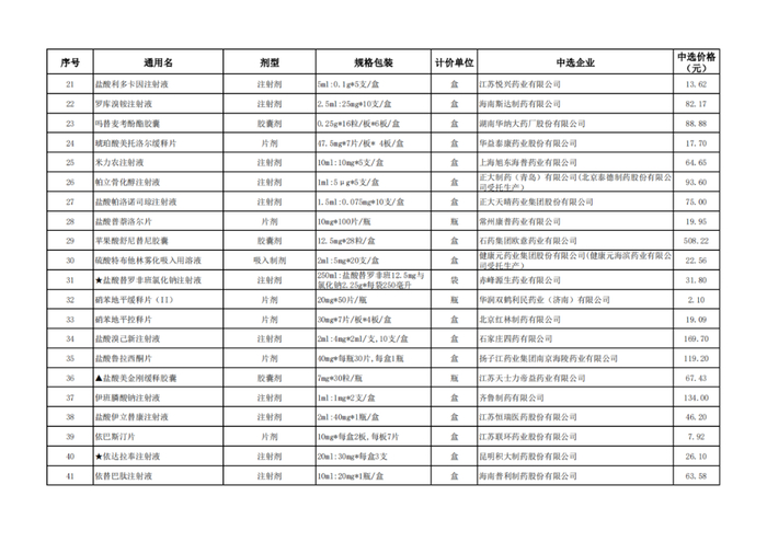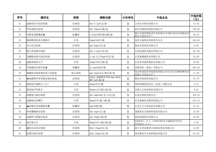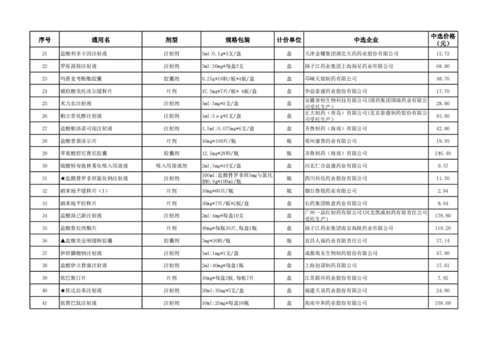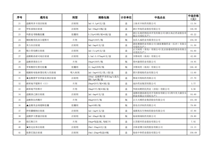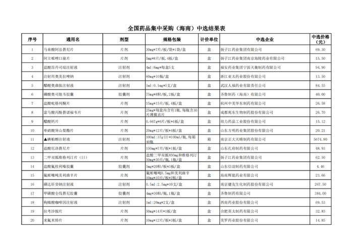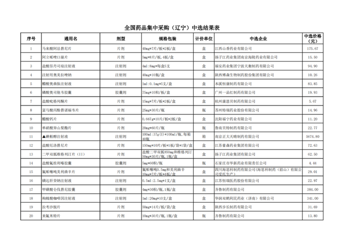 附:辽宁、青海、河北、上海、河南、海南中选结果表