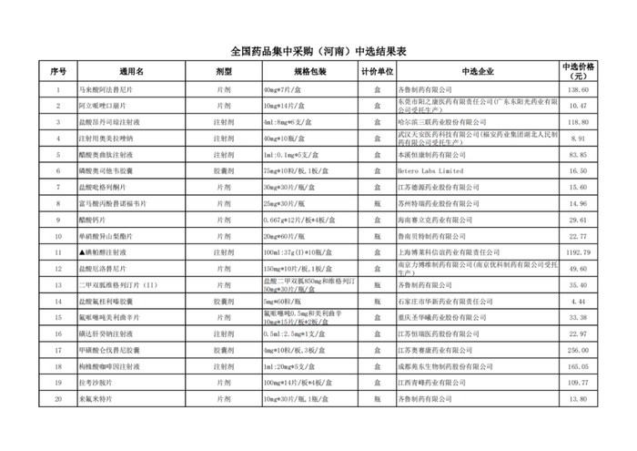 为确保医疗机构能够及时采购,河南省要求公共资源交易中心要做好中选和备供产品的信息维护、中选产品配送关系建立和三方购销合同签订等工作,于10月28日对相关药品价格进行统一调整。