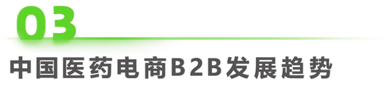 趋势展望:宏观环境方面,政策监管、疫情走向、技术应用等方面依然存在不稳定性,这给医药电商B2B的发展带来不确定因素,在此前提下,B2B厂商应不断修炼内核提升自身,如此方能行稳致远;中观行业方面,先进入者把握大量资源,行业集中度将日趋提升,强者恒强的马太效应愈加明显;微观服务方面,各B2B平台将依托自身能力,数智化加码,打造“药品购销+X”的多元服务,更好地服务上下游购销需求。