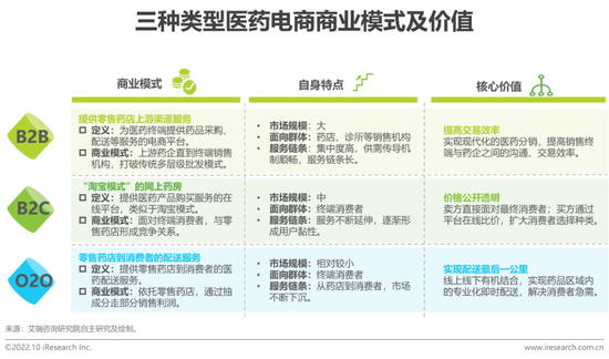 行业现状:医药电商B2B位于医药流通产业链的中游,以数字化方式革新产业链上下游之间的联系方式,节约流通成本,提升流通效率。按照发起方的不同进行划分,医药电商B2B可以分为政府主导的医药电商B2B、传统药批转型B2B以及第三方医药电商B2B平台,各模式市场特征与产品体系各不相同,同时以其数字化、便捷化服务共同助力医药流通的高效运转。