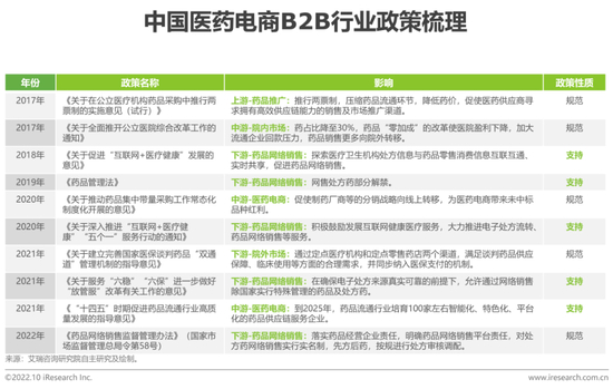 行业背景:商务部发布《关于“十四五”时期促进药品流通行业高质量发展的指导意见》,对我国医药流通行业“十四五”期间高质量发展提出明确要求。在此背景下,医药流通行业加快数字化转型,医药电商快速发展,B2B作为其中占比超过90%的商业模式,发展十分迅速。行业、政策、技术以及物流的进步为医药电商B2B的发展奠定了良好基础,促进医药流通供应链降本增效。