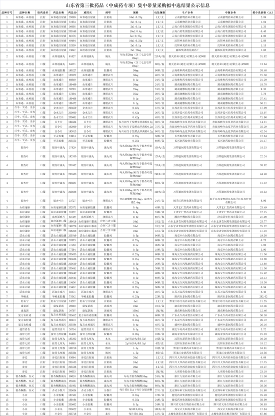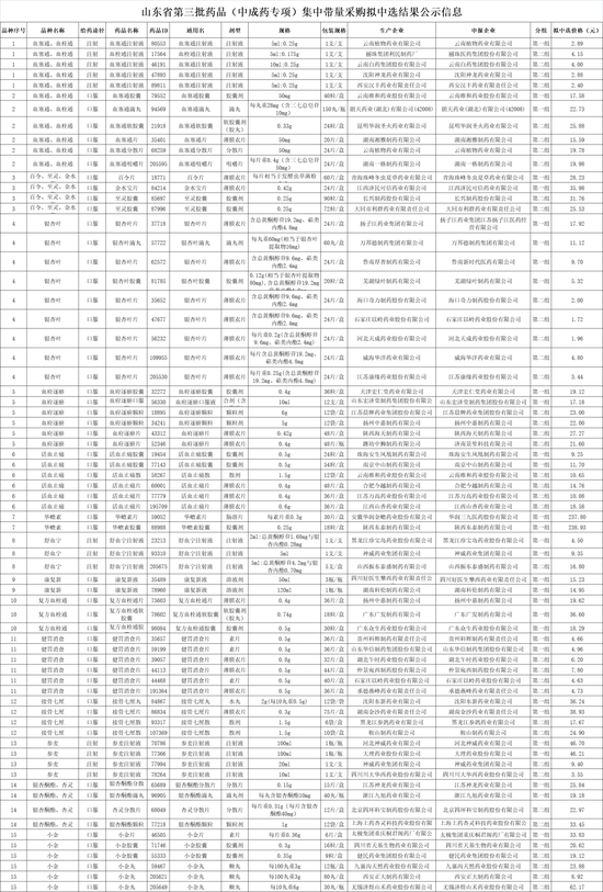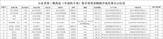 附:山东省第三批药品(中成药专项)集中带量采购拟中选结果(具体以官网信息为准)