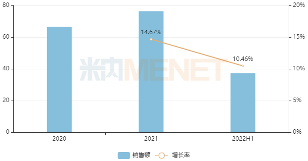 消痛贴膏是西藏奇正藏药的独家产品,用于急慢性扭挫伤、跌打瘀痛、骨质增生、风湿及类风湿疼痛。米内网数据显示,近年来在中国公立医疗机构终端消痛贴膏销售规模稳步攀升,2020年首次突破10亿元,2021年再创新高,2022年上半年则继续稳步攀升。