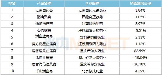 中成药贴膏剂TOP10出炉!奇正、羚锐、康缘……6个独家产品霸屏