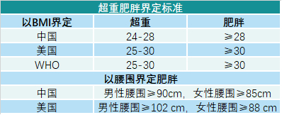 世界各国对于肥胖的界定不一,多是根据本国情况来对肥胖进行界定。