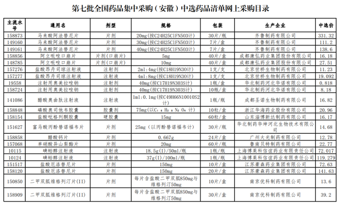 附3:安徽第七批国采中选供药品清单网上采购目录