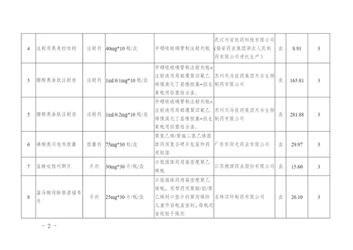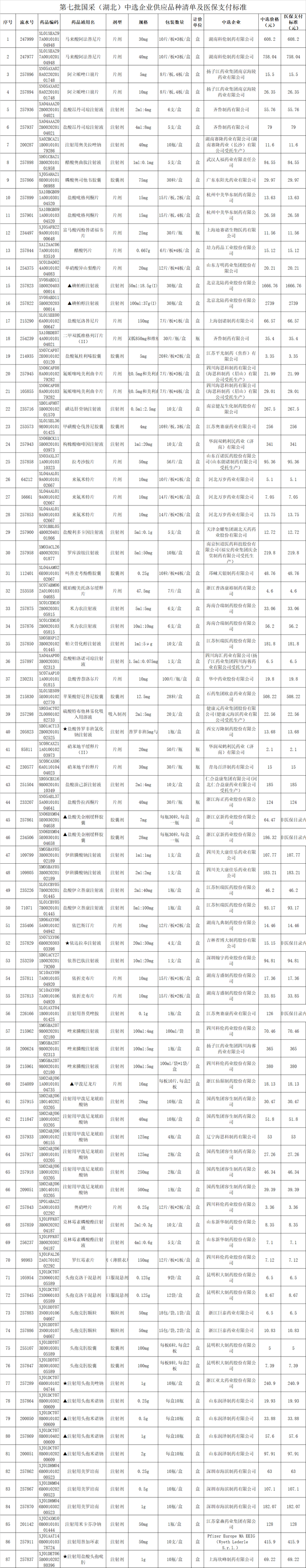 附2:湖北第七批国采中选企业供应品种清单及医保支付标准