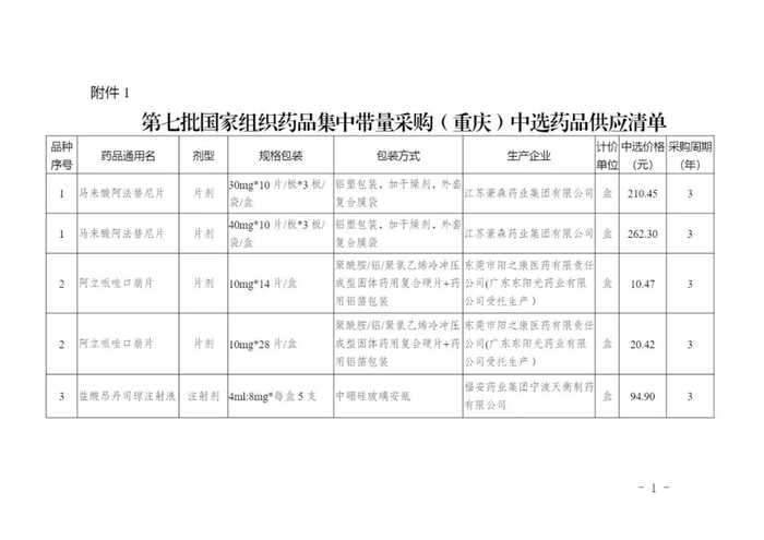 附4:重庆第七批国采中选药品供应清单