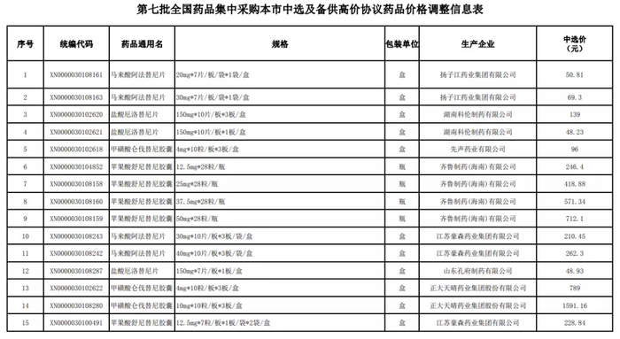 11月18日,湖南省医保局发布《关于做好第七批国家组织药品集中带量采购中选结果执行工作的通知》,确定中选结果于11月25日起在全省挂网执行(名单见文末附件1)。
