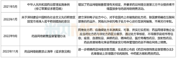 近年来有关网络零售药品的政策