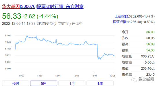 此文一出,舆论一片哗然,华大基因的股价应声下跌超4%,截止发稿前,华大基因市值为233.16亿元。