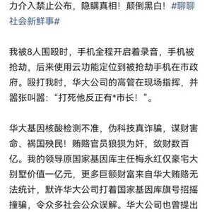 文中提到华大基因联合碧桂园套骗国有资产,并指出华大基因是一个伪高科技掩盖下诈骗地方政府免费土地和财政补贴的房地产奸商。