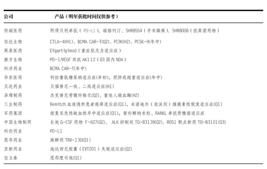明年国内可望上市的部分创新药