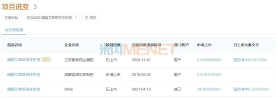 12月8日NMPA官网消息,豪森的醋酸艾替班特注射液获批上市,用于遗传性血管水肿急性发作,这是国内首个获批的艾替班特仿制药。该注射剂原研为武田公司,2021年全球销售额达267亿日元(即时汇率约为2亿美元)。原研的醋酸艾替班特注射液于2021年4月获批进入中国市场,并进入了医保谈判目录。(米内网整理)