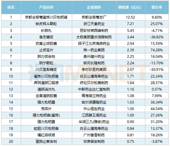 这20个止咳中成药卖得最好:公立医院终端广州万正药业销售额跌17%,药店终端太极集团急支糖浆跌38%(附名单)