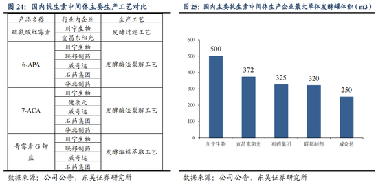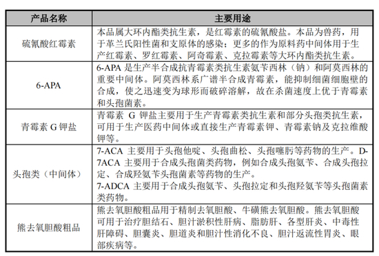在竞争格局层面,川宁生物在硫氰酸红霉素、7-ACA、6-APA三个品种中,产量均占据国内市场主要位置。