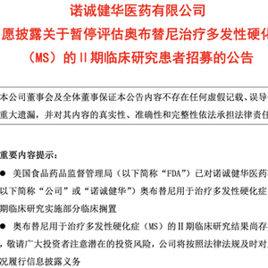 诺诚健华日前发布公告,因观察到肝损伤病例,美国FDA已对奥布替尼用于治疗多发性硬化症(MS)Ⅱ期临床研究实施部分临床搁置。因此,在美国进行的该临床研究不会开展新的患者招募,同时奥布替尼用于治疗该适应症的临床研究结果也存在不确定性。