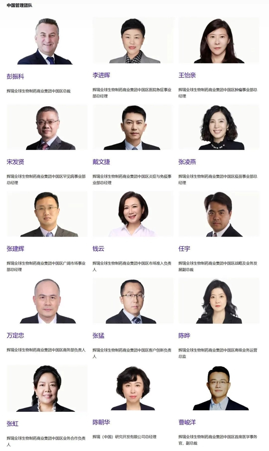 辉瑞中国管理团队