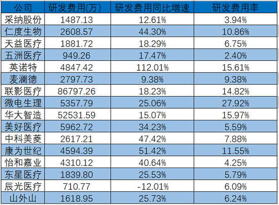 要想在高端医疗设备领域赶超国际巨头,巨额的研发投入少不了。前三季度,16家新上市的医疗器械企业研发费用共计18.09亿元,研发费用平均同比增长30.34%。