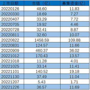 16家公司IPO募资金额及市值情况