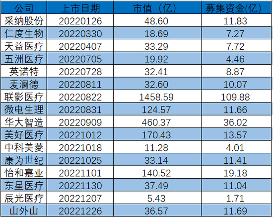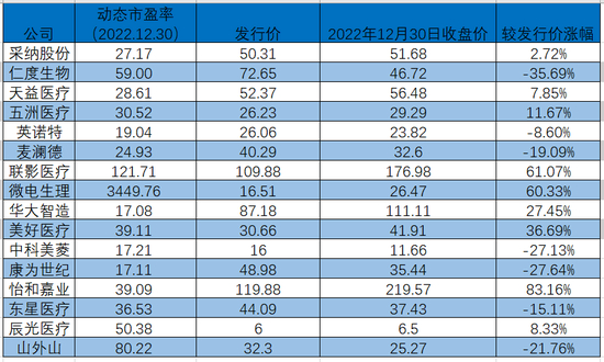 2022年,在整个医疗器械板块表现不佳的情况下,16家新上市公司表现同样不尽人意。