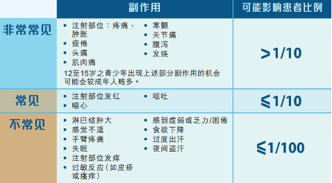 接种复必泰或复必泰二价疫苗后可能出现的副反应参见下图: