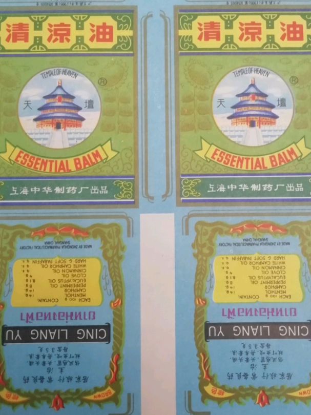 上海中华药业有限公司是近代中国第一批民族制药工业企业,创立于1911年,是生产清凉油、龙虎人丹、风油精等OTC药品,生化药,及妆品、日用品等非药产品的综合型制药企业。清凉油是20世纪50年代上药中华继“龙虎人丹”后研制的第二大主力产品,以其独创性的配方和制造工艺,被列为国家秘密技术项目,成为拥有自主知识产权的代表性中药制剂之一。1957年,上药中华注册了以出口为主的“天坛”商标,并登上世界舞台,从东亚、南非市场,再进军美洲市场,“天坛”清凉油在全球逐步扩大了知名度。