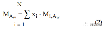 对于两种组分的混合物,混合物的吸附等温线是各个组分的吸附等温线的线性组合。可以通过以下方式计算混合物在特定水活度(MAw)下的自由水含量:已知N种不同组分i(xi)的比例以及该水活度值(Mi,Aw)时的含水量: