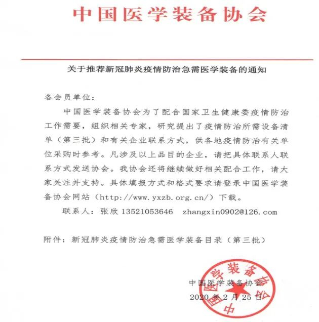 在疫情当前的情况下,中国医学装备协会发布了《关于推荐新冠肺炎疫情防治急需医学装备的通知》,其中翔宇医疗的红外光灸疗机成功入选新冠肺炎疫情防治急需医学装备目录第三批名单。