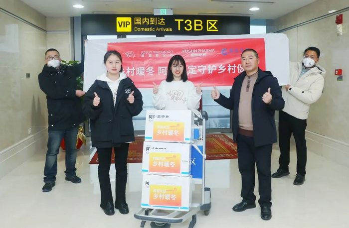 1月18日18时,由复星成员企业舍得酒业和复星商社的员工志愿者赵兴、王慧博和“星二代”小志愿者王振轩护送的3000瓶药运抵成都双流机场,之后再被送往射洪、石棉、泸定三县。泸定县卫生健康局局长接受捐赠时表示:“随着春节和藏历新年临近,农村在防疫上的压力更大,这些防疫药品为我县农村地区做好‘保健康、防重症’提供了重要帮助。”