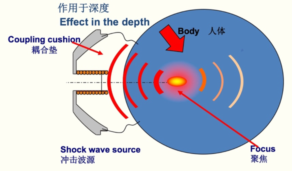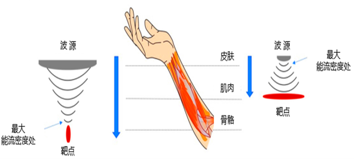 聚焦式的冲击波随着深度的增加,能量基本不会衰减,在聚焦点处能量最大,能够把能量最大化作用到病灶部位,作用于患处。