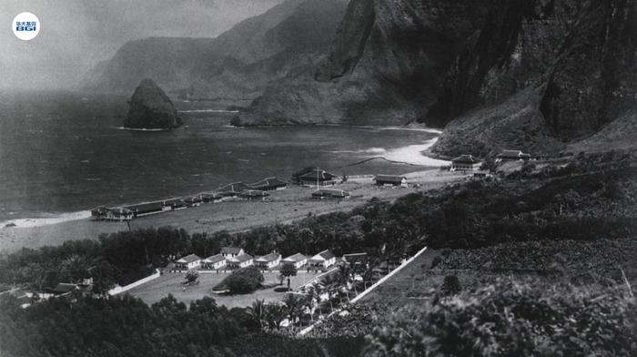Kalawao是夏威夷摩洛凯岛卡劳帕帕半岛东侧的一个位置,在1866年至20世纪初是夏威夷麻风病人聚居地。照片的视图显示了约1900年该聚居地的情况。