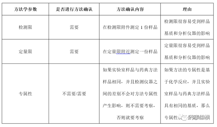 一般来说,药典中收载的基本检测方法不要求进行方法确认。基本检验方法包括:干燥失重、炽灼残渣、重金属、热分析法等,以及各种湿法化学分析(比如酸值测定)和用简单的仪器进行的检测(如pH测定)等。