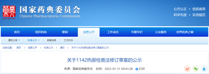我委拟修订《中国药典》2020年版通则1142 热原检查法,为确保标准的科学性、合理性和适用性,现将拟修订标准公示征求社会各界意见(详见附件)。