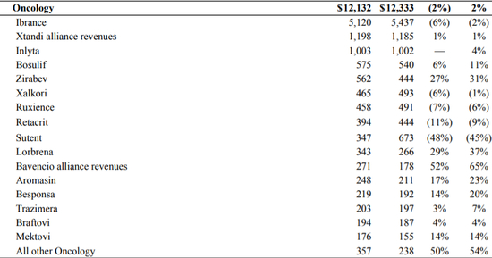 辉瑞的抗肿瘤业务销售额