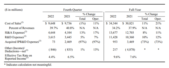 在1003亿美元的销售额中,销售成本为343.44亿美元,毛利水平为65.8%,市场和管理费用为136.77亿美元,占销售额的13.6%,研发投入为114.28亿美元,占销售额水平的11.4%。报告净利润达313.72亿美元,同比增长43%,简直是富可敌国。