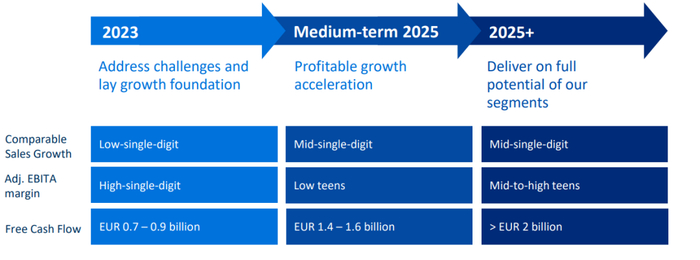 调整后的息税前利润:36.55亿欧元(+16.3%),利润率16.8%(2021财年为17.4%),成本增加特别是采购和物流,中国的疫情管控,以及负面的货币影响,影响了2022财年的调整后息税前利润率。