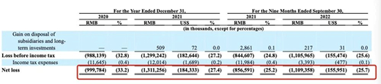营收的高速增长难以掩盖亏损端的持续加深。2020年-2022年前三个季度,新瑞鹏净亏损分别为10亿元、13.11亿元、11.09亿元,近三年亏损超30亿元。虽然净损失占总收入的百分比从2020年的33.2%下降到2021的27.4%,在截至2022年9月30日的9个月中进一步下降到25.7%,但仍难掩“增收不增利”的亏损状态。
