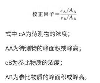 即以主成分作为对照的内标法,需要提供杂质对照品,测定杂质含量时,可釆用加校正因子的主成分自身对照法。也可建立方法时将测得的校正因子载入质量标准,精密称取待测物对照品和杂质对照品各适量,配制待测杂质校正因子的溶液,进样,记录色谱图,按下式计算待测杂质的校正因子。