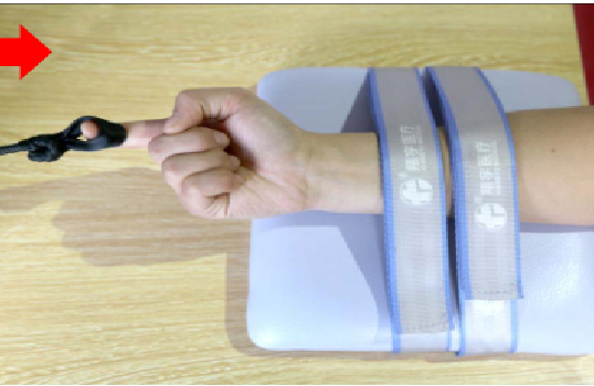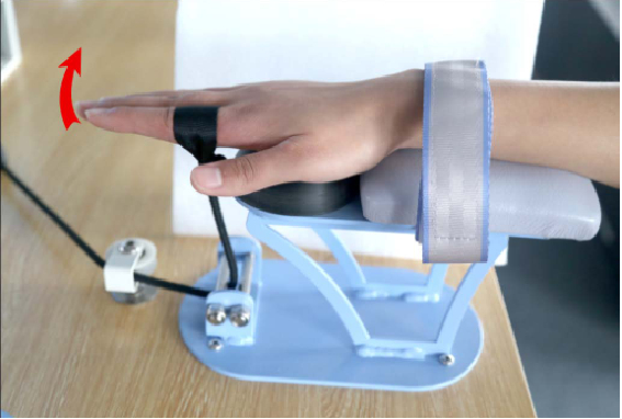 通过改变不同手指的牵引模式,逐渐递增阻力,进行渐进式训练,改善手指的活动度,增加肌力。