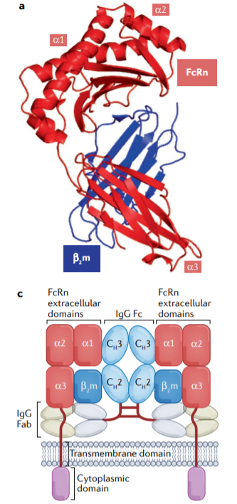 FCGRT同源基因存在于大多数哺乳动物中,编码的蛋白质显示出与人类受体的高度保守性。FcRn的α1-α2-α3结构域与MHCI类分子具有高度的结构同源性,并与β2-微球蛋白(β2m)非共价结合,形成异二聚体。