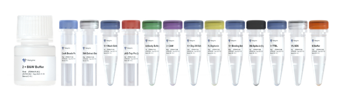 ● Hyperactive Universal CUT&Tag Assay Kit for Illumina Pro(Vazyme #TD904)是Vazyme 最新款的CUT&Tag建库试剂盒,基于前代明星产品Vazyme #TD903升级而来,兼容细胞量低至10个,同时能够有效提取小于120bp的小片段产物,并且添加DNA Spike-in组分,用于校正组间差异。更便捷、更高效、更准确的Vazyme #TD904现已升级上市!